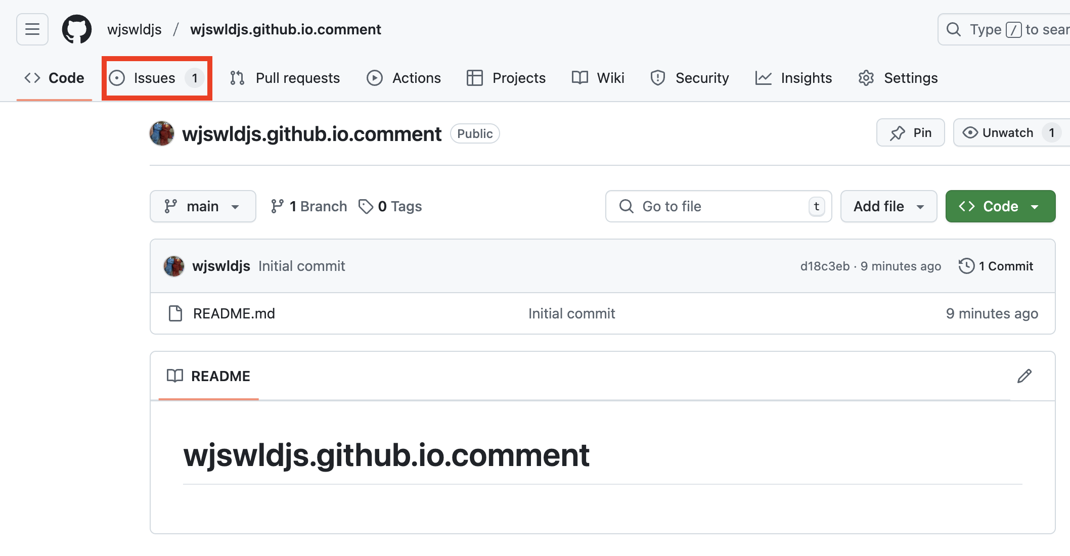 Issues탭이 활성화되어 있으면 준비 완료입니다
