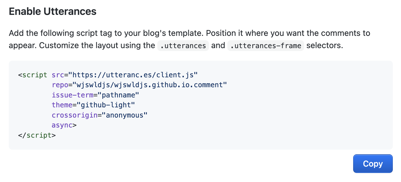- Utterances를 이용하면 GitHub 기반 Blog 댓글 시스템을 간편하게 붙일 수 있다.