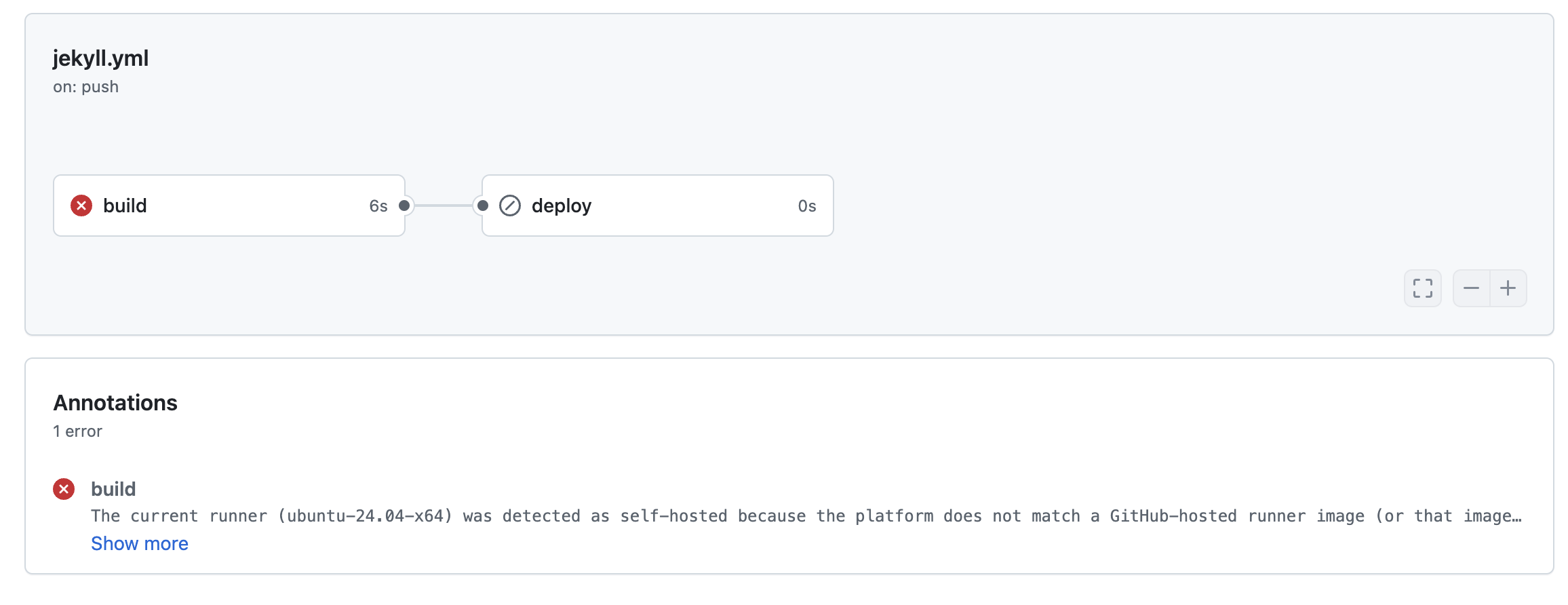 오류 메세지 build The current runner (ubuntu-24.04-x64) was detected as self-hosted because the platform does not match a GitHub-hosted runner image (or that image is deprecated and no longer supported). In such a case, you should install Ruby in the $RUNNER_TOOL_CACHE yourself, for example using https://github.com/rbenv/ruby-build You can take inspiration from this workflow for more details: https://github.com/ruby/ruby-builder/bloster/.github/workflows/build.yml $ ruby-build 3.1.4 /opt/hostedtoolcache/Ruby/3.1.4/x64 Once that completes successfully, mark it as complete with: $ touch /opt/hostedtoolcache/Ruby/3.1.4/x64.complete It is your responsibility to ensure installing Ruby like that is not done in parallel.