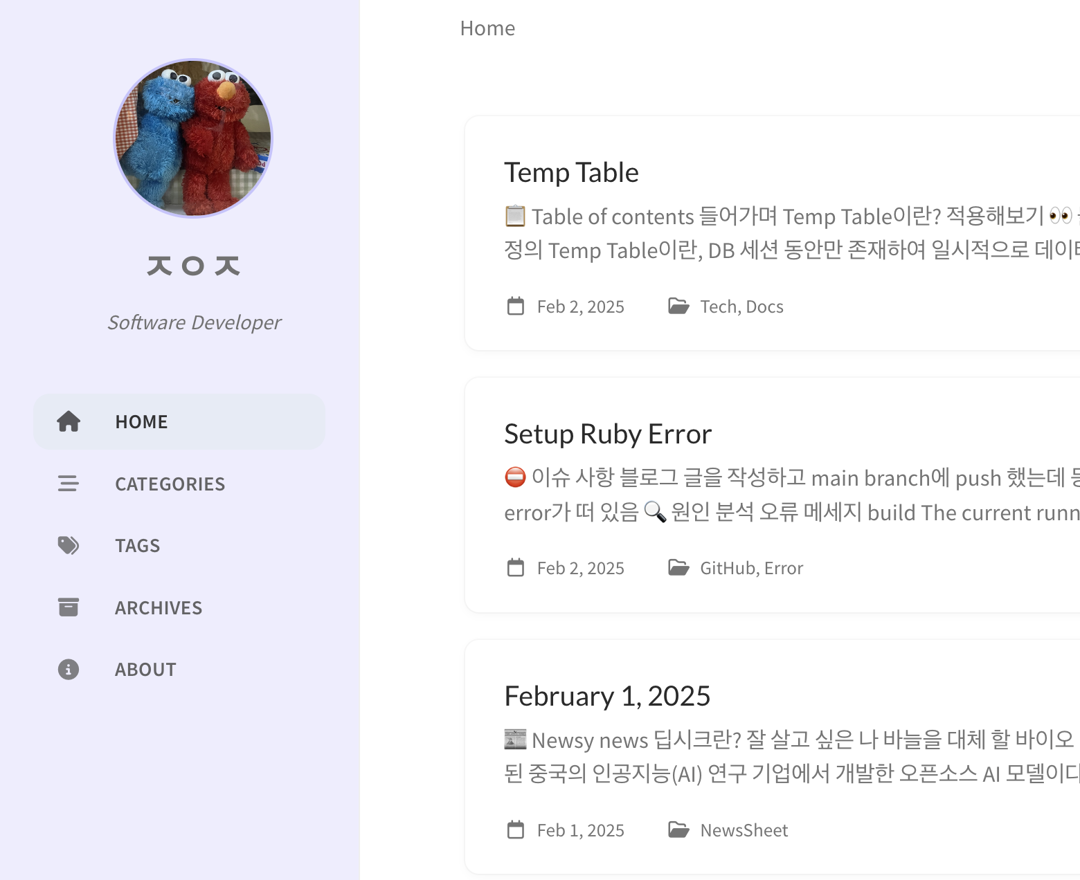 Chirpy 테마로 블로그를 만들다 보면 기본 스타일을 수정하고 싶을 때가 있습니다. 저는 #sidebar의 배경색을 바꾸고 싶어서 custom.css를 적용하는 과정을 겪었고, 시행착오가 많았던 내용을 아래에 남깁니다.